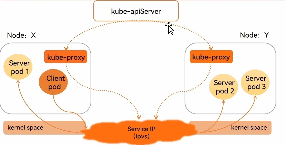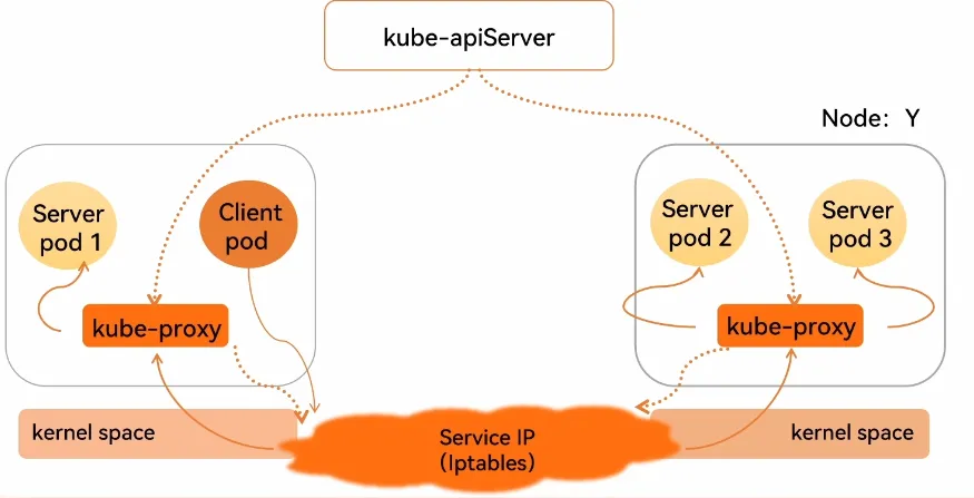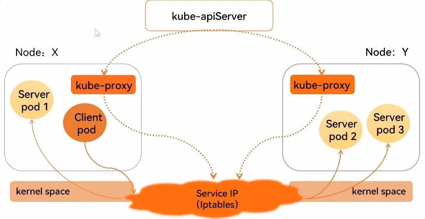 - kube-proxy 监听 apiserver,如果Service 发生了变化,那么就修改本地的 iptables 规则。代理来自当前 Pod 的用户请求